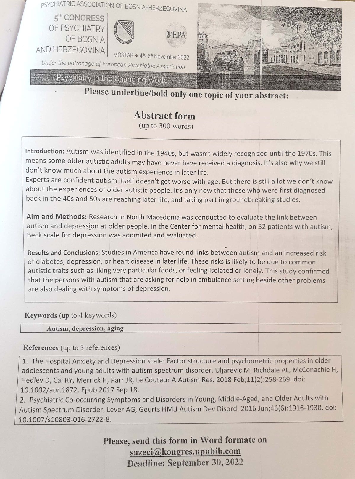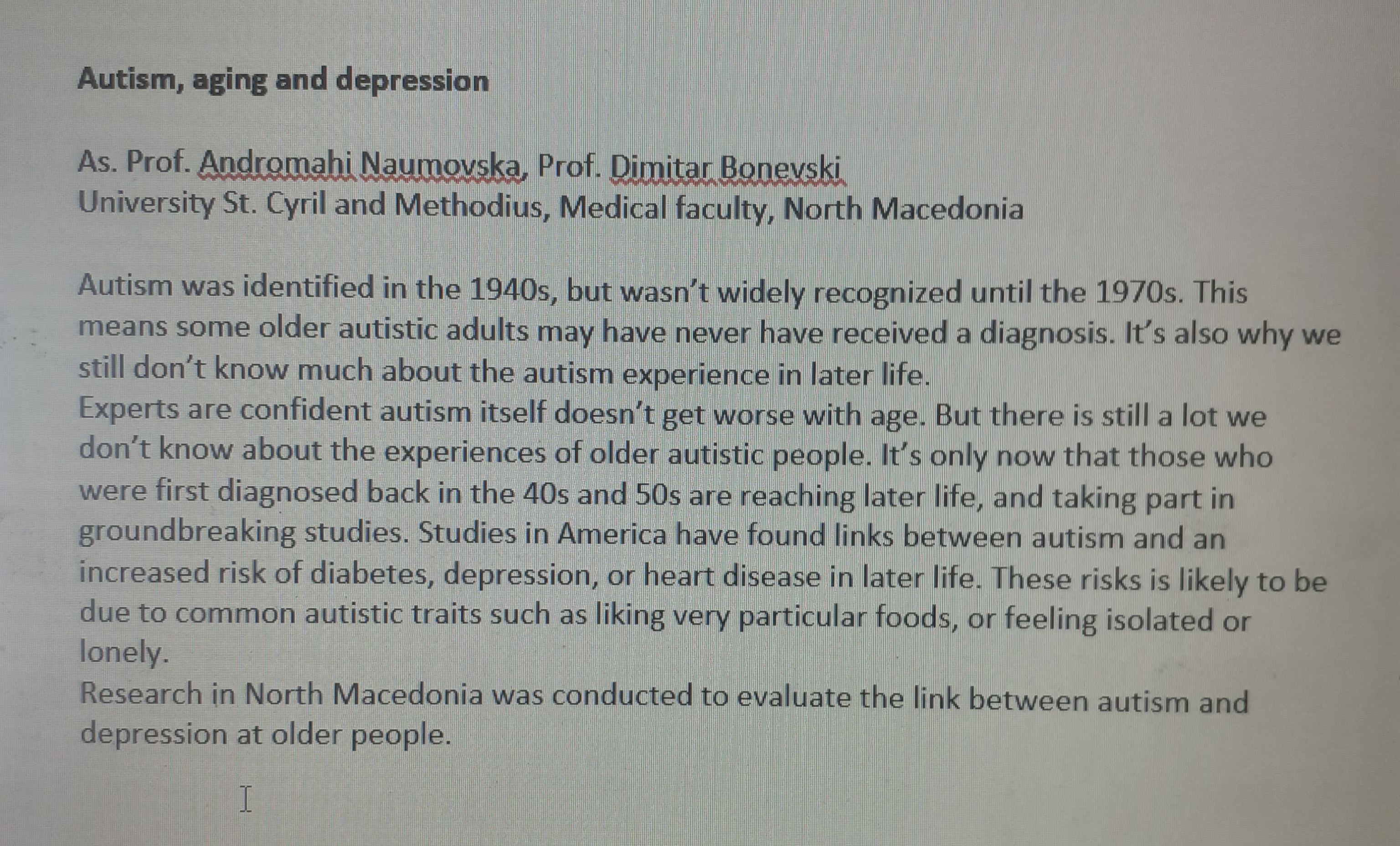 Research in North Macedonia was conducted to evaluate the link between autism and depression at older people.