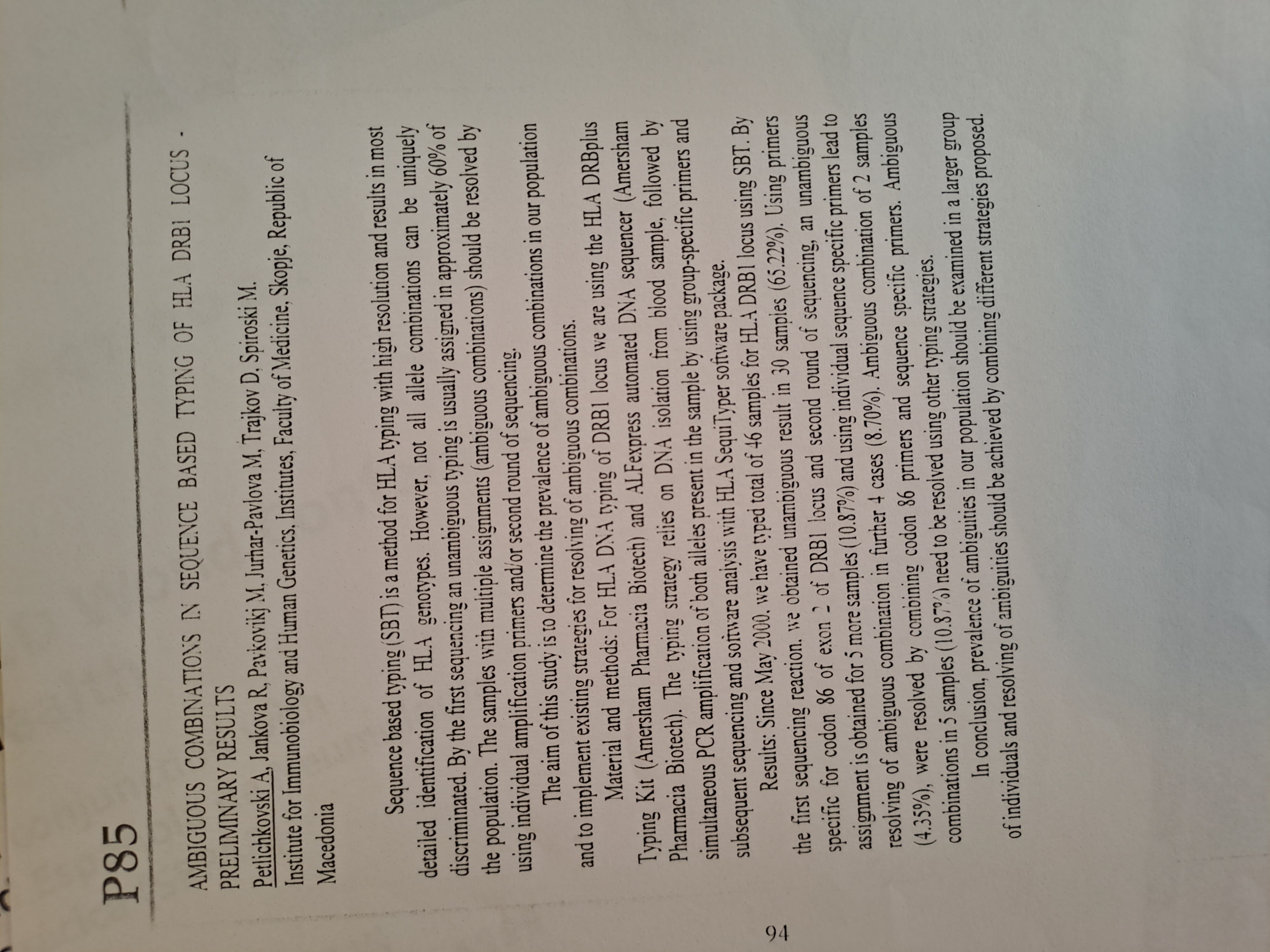 Ambiguous combinations in sequence based typing of HLA DRB1 locus-prelininary results.