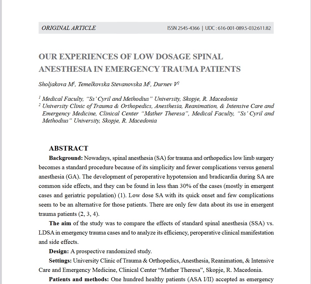 Our experiences of low dosage spinal anesthesia in emergency trauma patients