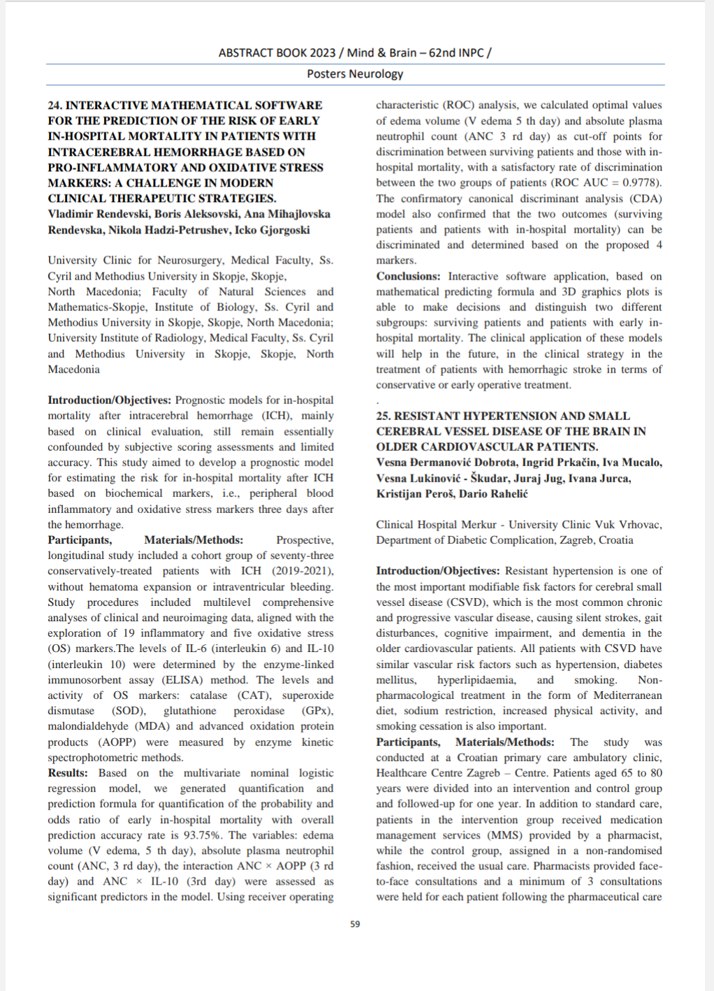 Interactive mathematical software for the prediction of the risik of early in-hospital mortality in patients with intracerebral hemorrhage based on pro-inflammatory and oxidative stress markers: a challinge in modern clinical therapeutic strategies