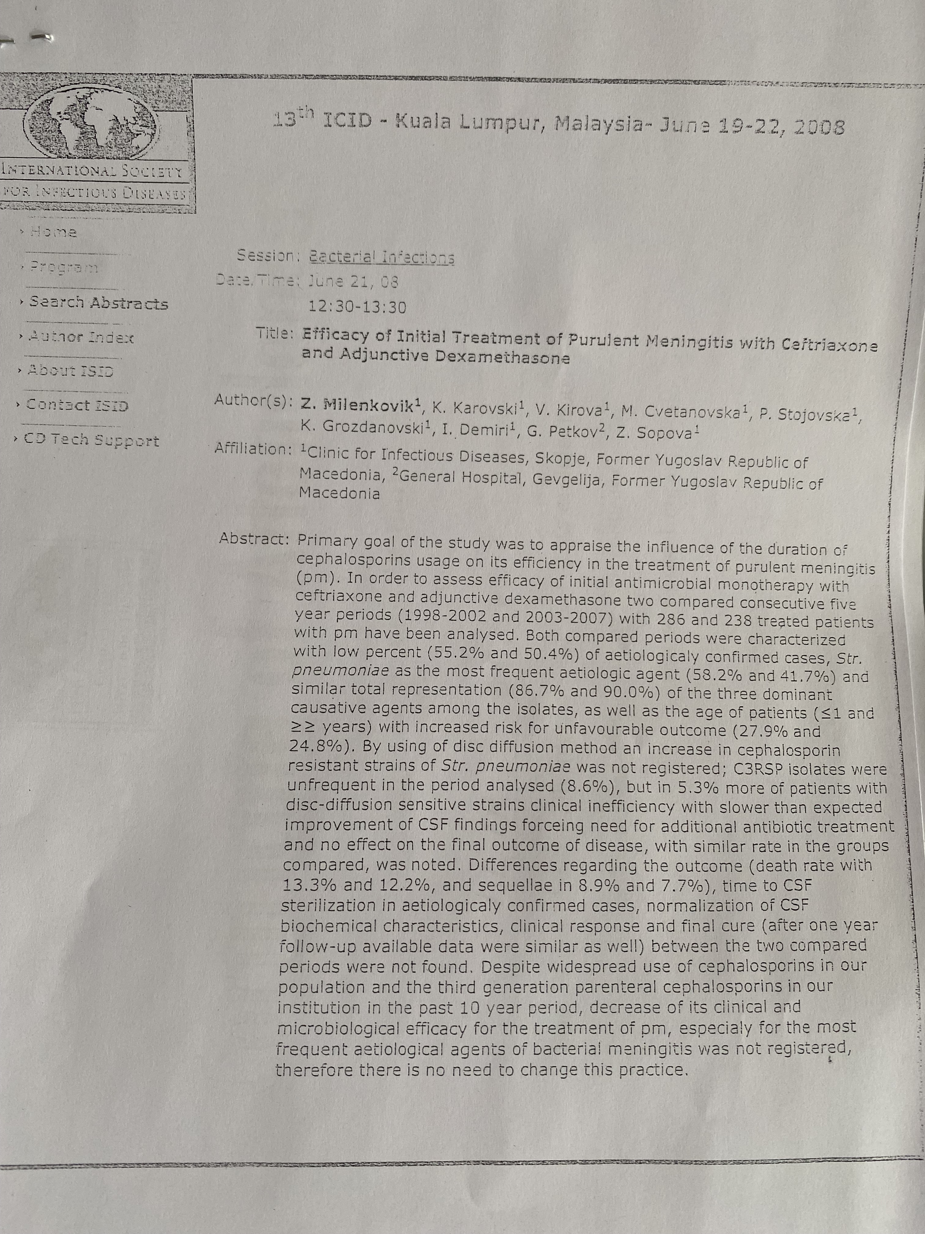 Efficacy of initial treatment of purulent meningitis with ceftriaxone and adjuvant dexamethasone