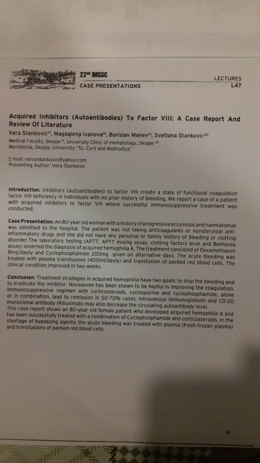 Acquired Inhibitors (Autoantibodies) to Factor VIII: A Case Report and Review of Literature