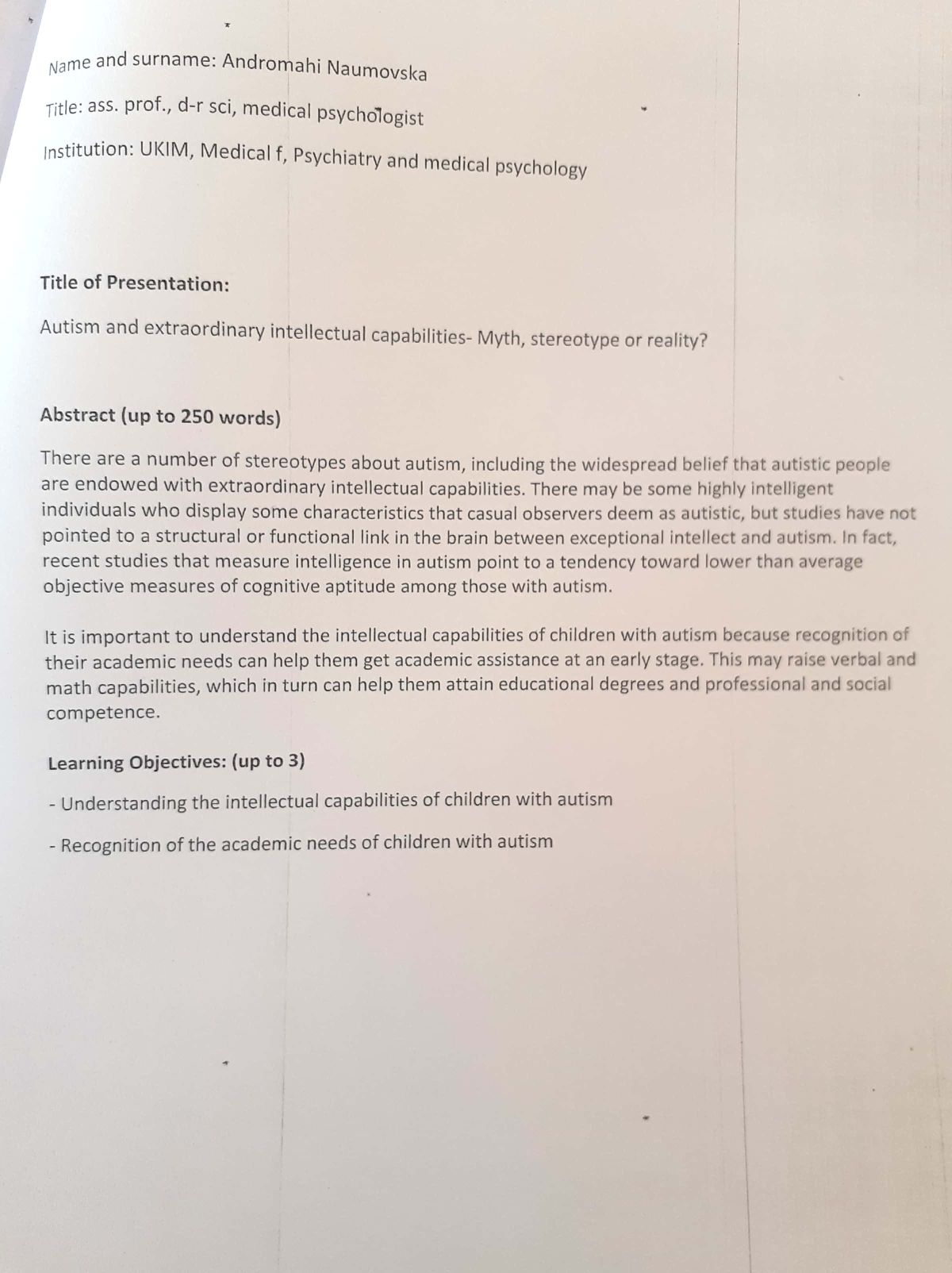 Autism and extraordinary intellectual capabilities - Myth, stereotype or reality?