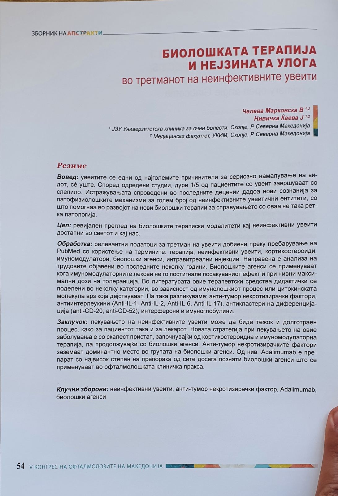 БИОЛОШКАТА ТЕРАПИЈА И НЕЈЗИНАТА УЛОГА во третманот на неинфективните увеити