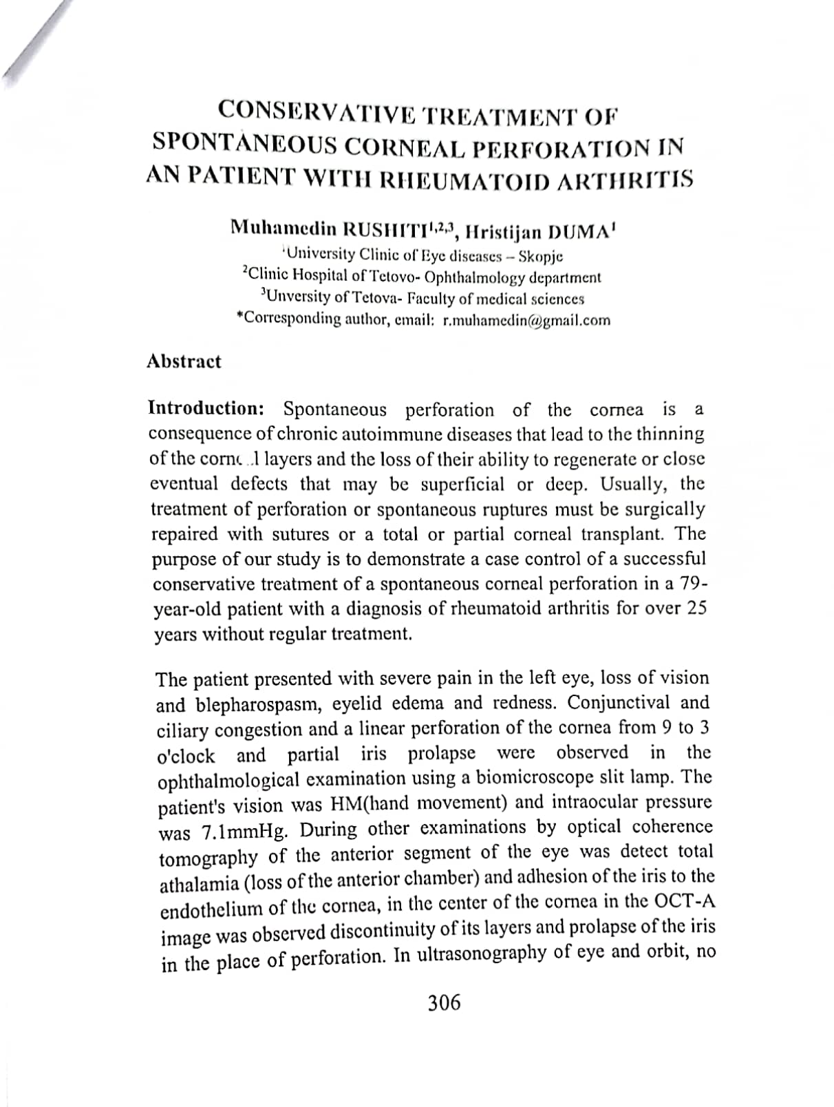 Conservative treatment of spontaneous corneal perforation in a patient with a rheumatoid arthritis