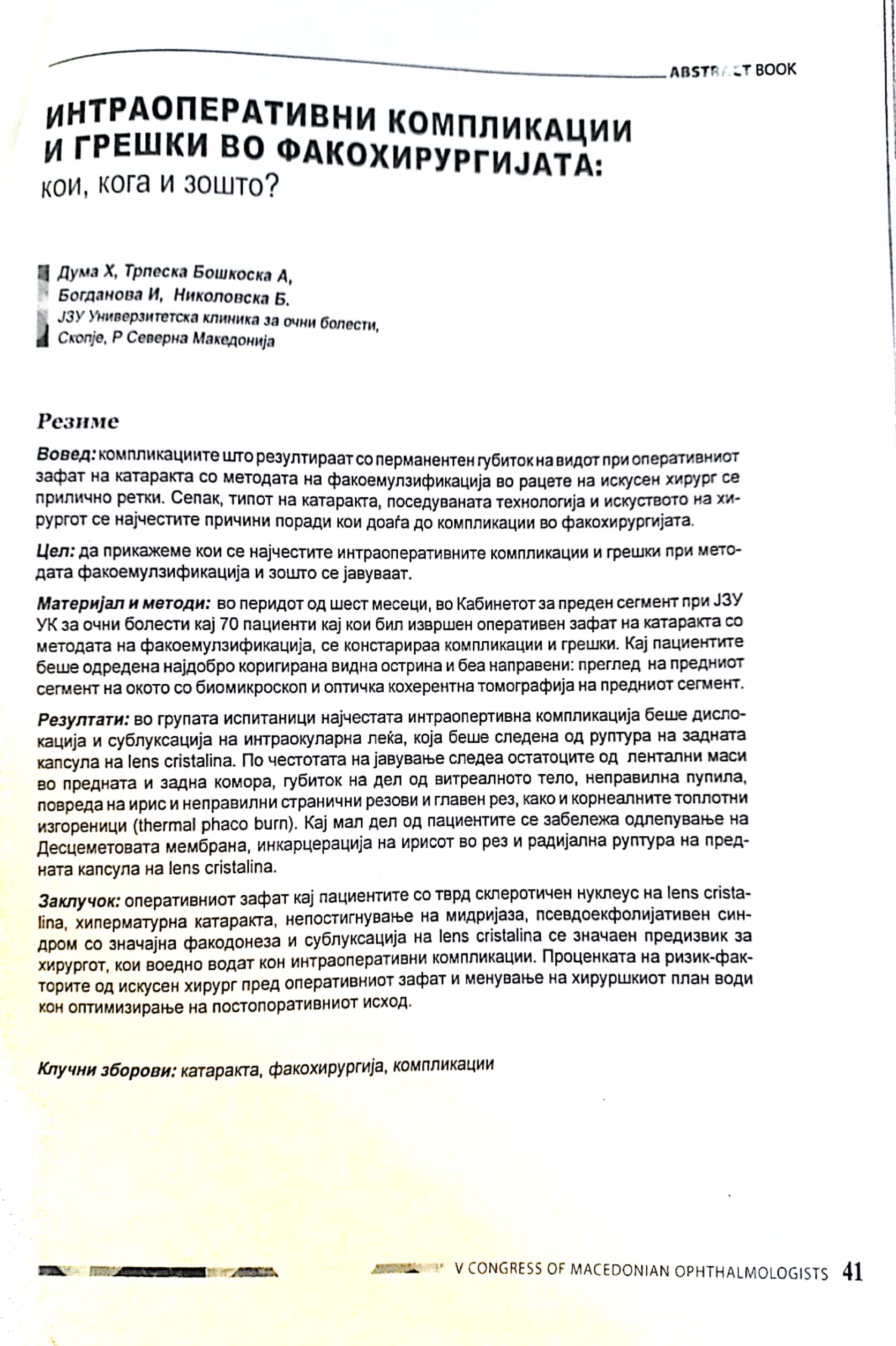 Интраоперативни компликации и грешки во факохирургијата: кои, кога и зошто?