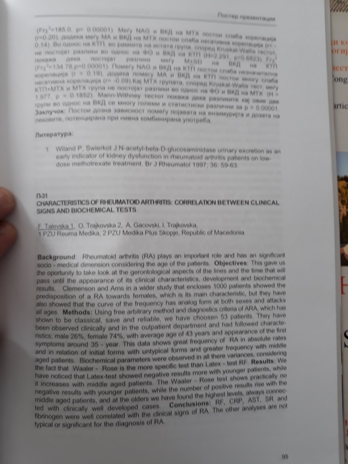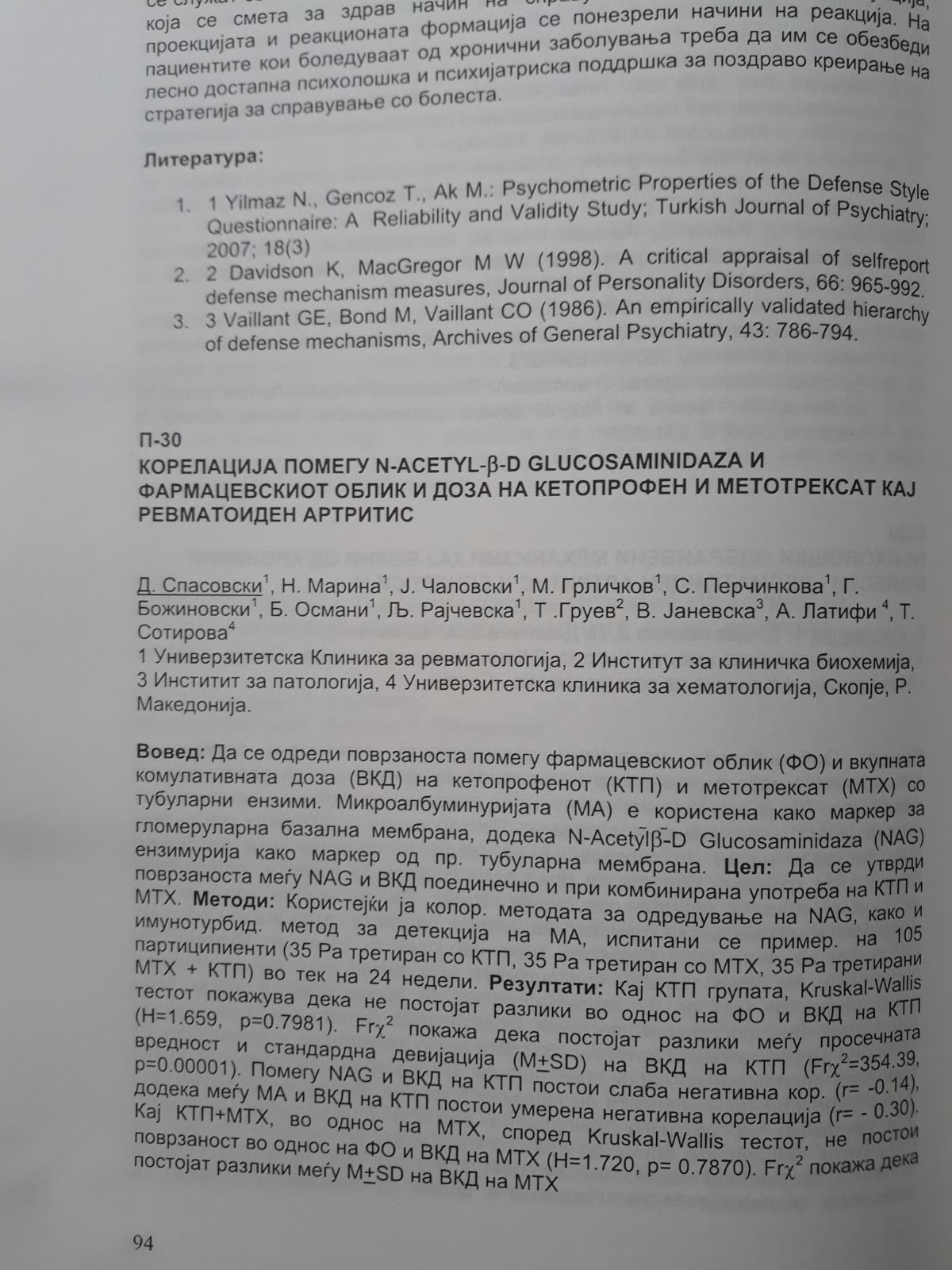 Корелација помеѓу N-Acetyl-B-D-glocosaminidasa и фармацевскиот облик и доза на кетопрофен и метотрексат кај ревматоиден артритис