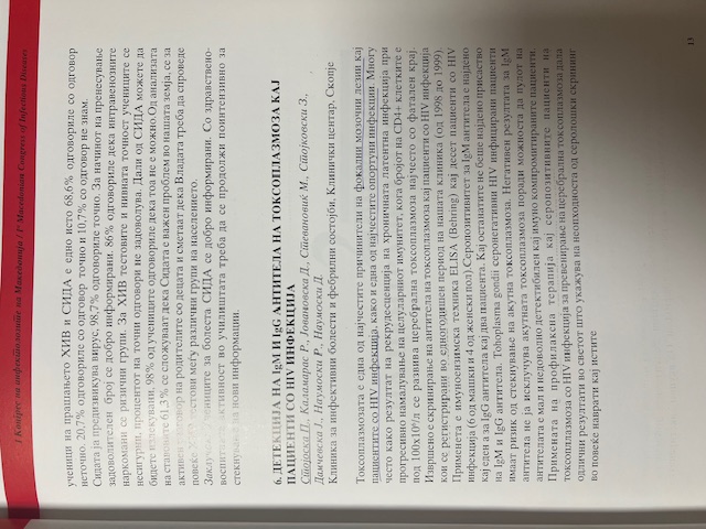 Детекција на ИгМ и ИгГ антитела на токсоплазмоза кај пациенти со ХИВ инфекција