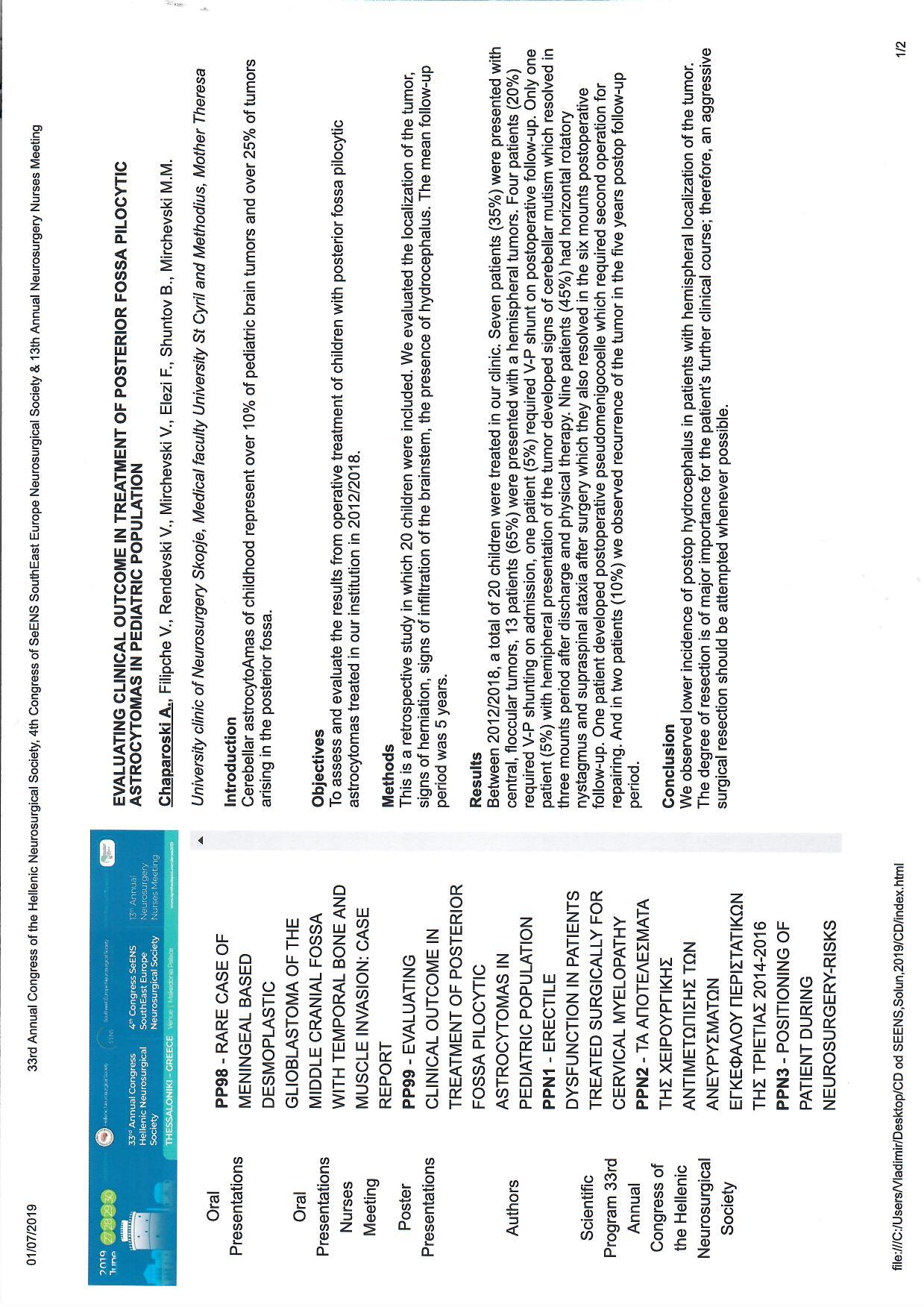 Evaluating clinical outcome in treatment of posterior fossa pilocytic astrocytomas in pediatric population