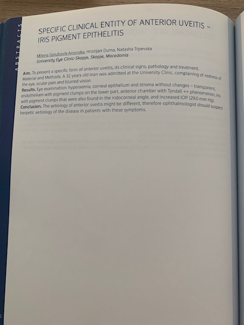 SPECIFIC CLINICAL ENTITY OF ANTERIOR UVEITIS-IRIS PIGMENT EPITHELITIS