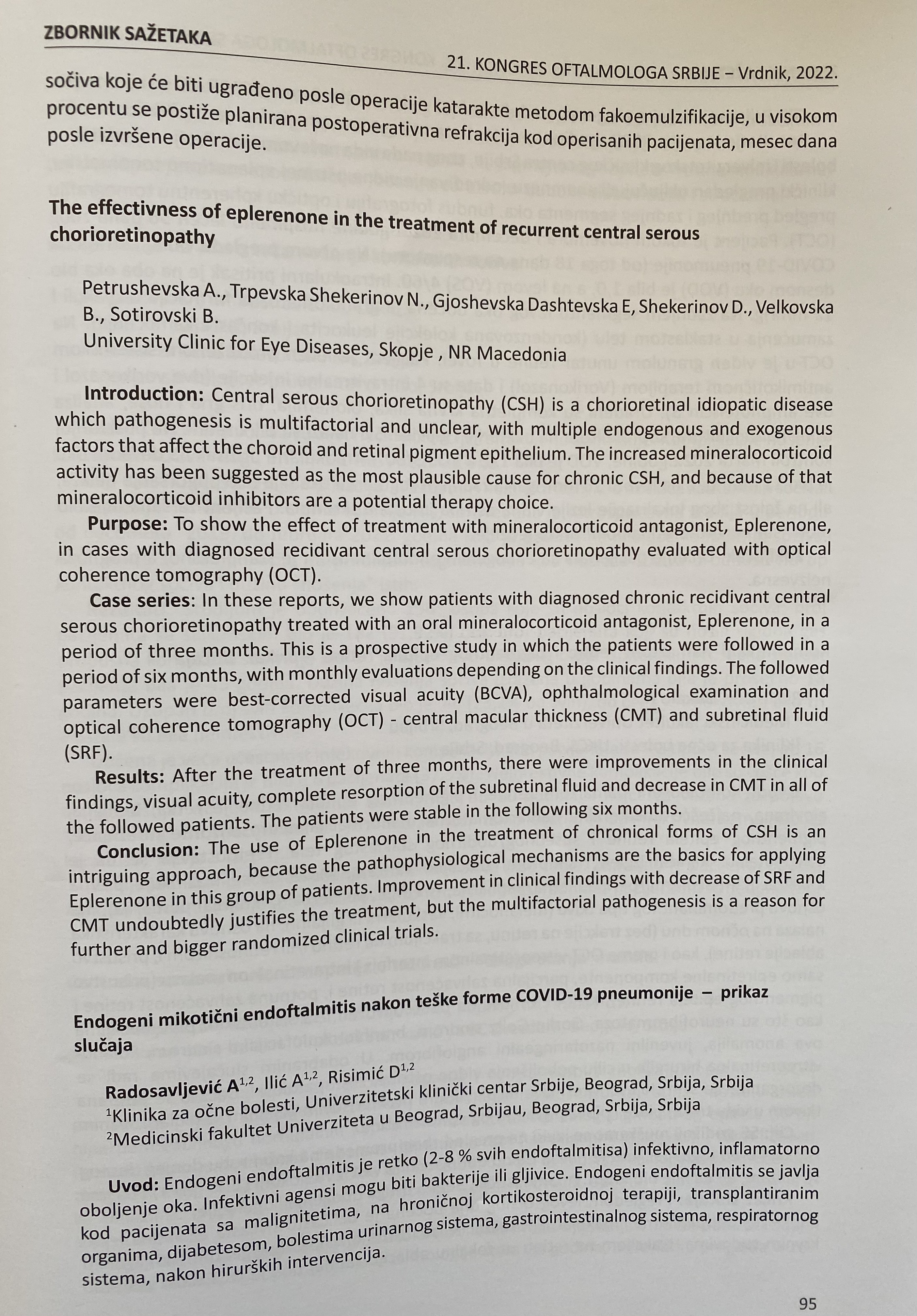 The effectivness of eplerenone in the treatment of recurrent central serous chorioretinopathy