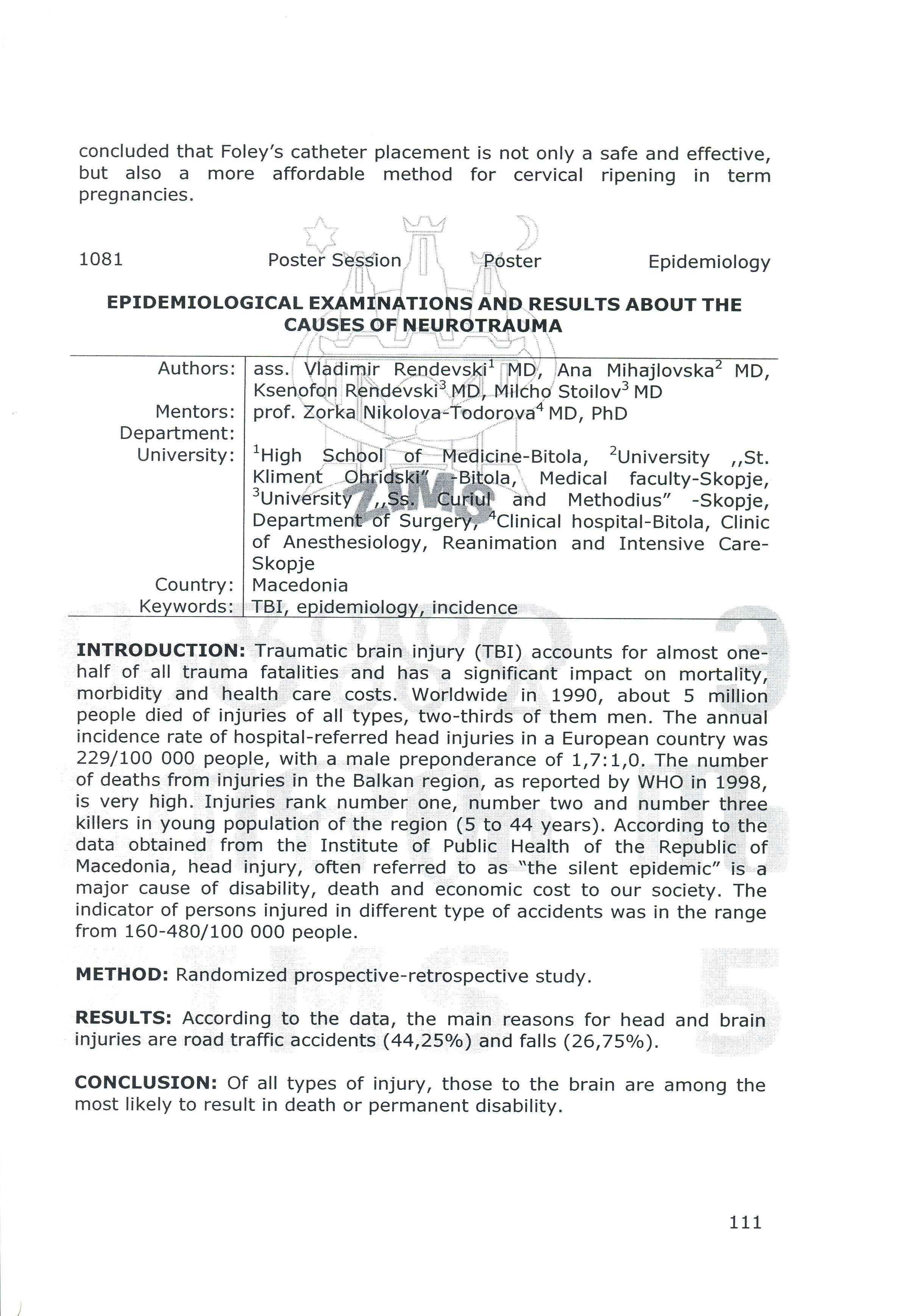 Epidemiological examination and results about the causes of neurotrauma.