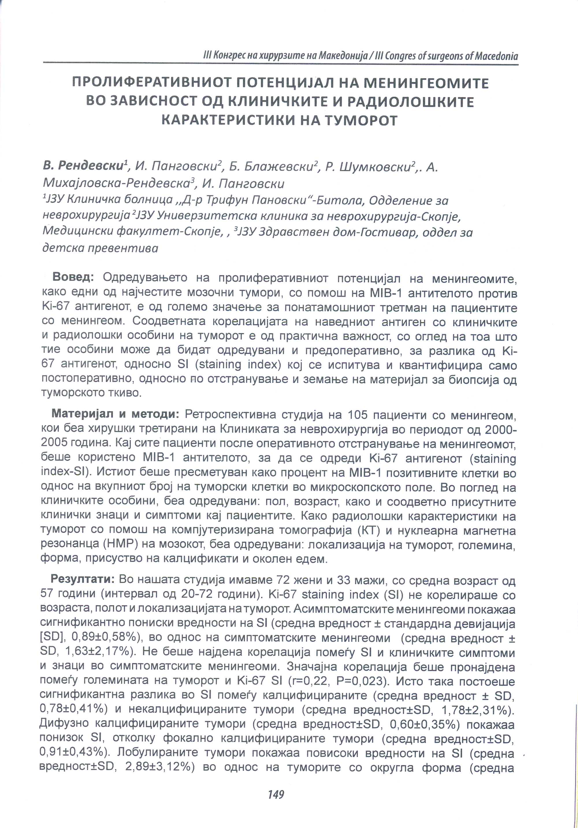Proliferative potential of the meningiomas with corellation of the clinical and radiological characteristics of the tumor.