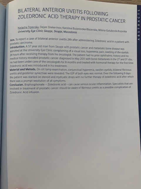 BILATERAL ANTERIOR UVEITIS FOLLOWING ZOLEDRONIC ACID THERAPHY IN PROSTATIC CANCER