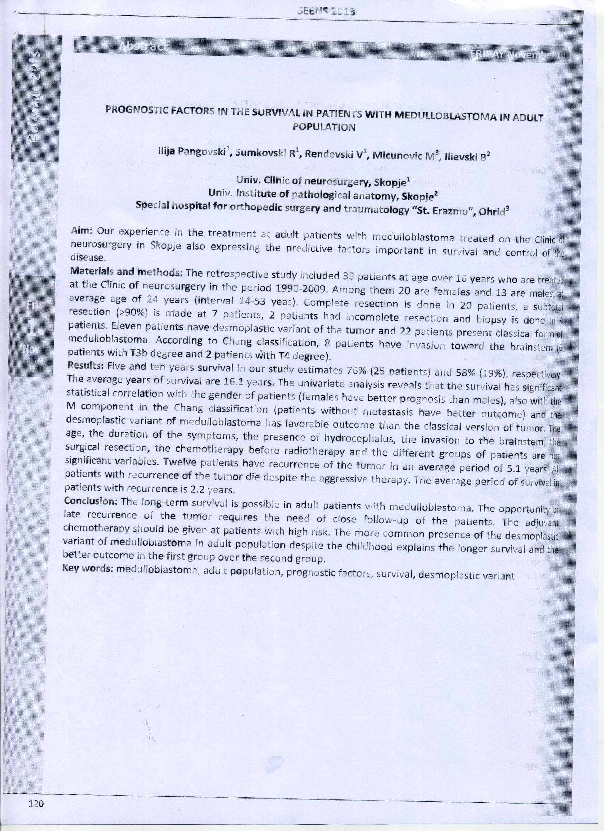 Prognostic factors in the survival in patients with medulloblastoma in adult population