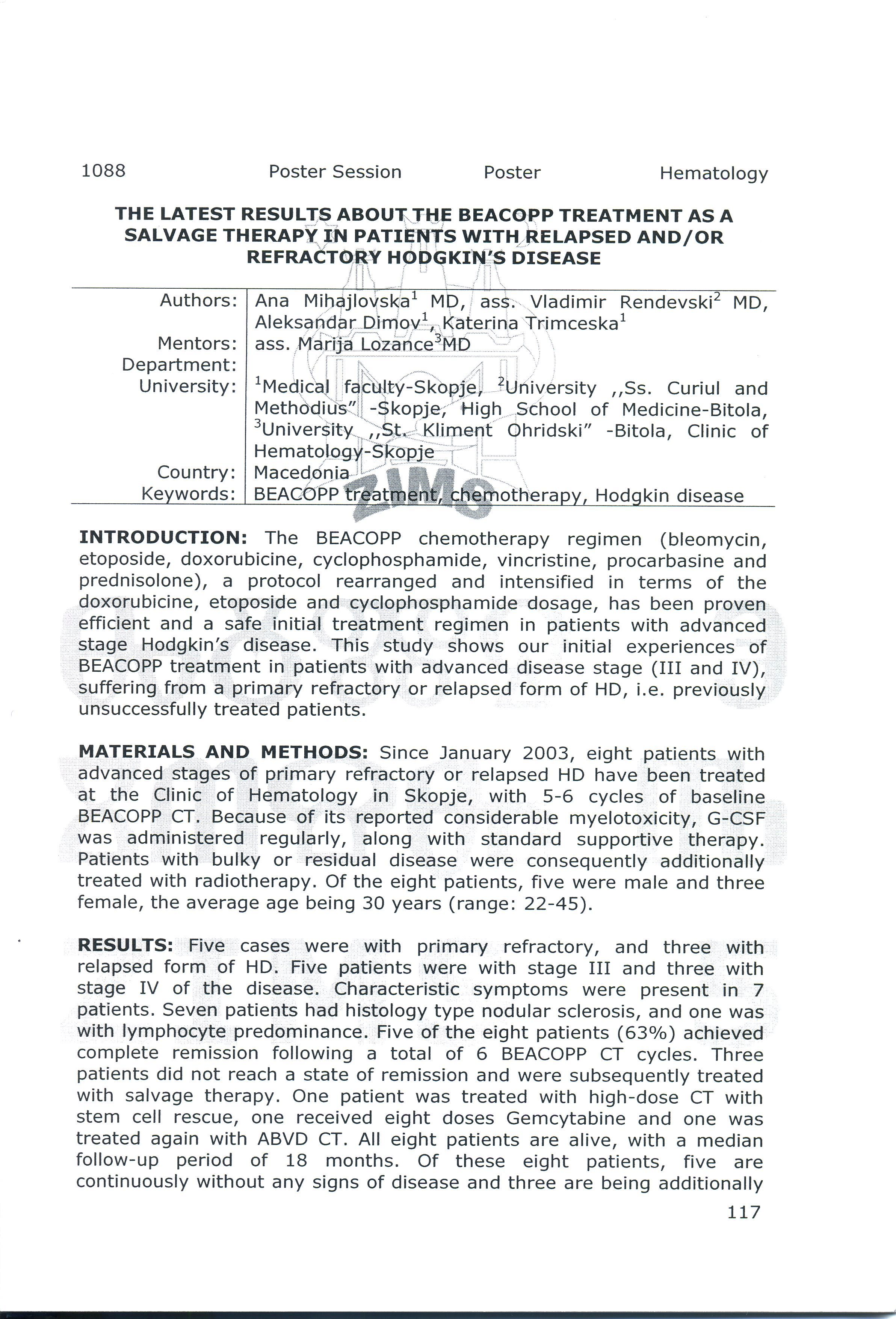 The latests results about the BEACOPP treatment as a salvage therapy in patients with relapsed and/or refractory Hodgkin’s disease