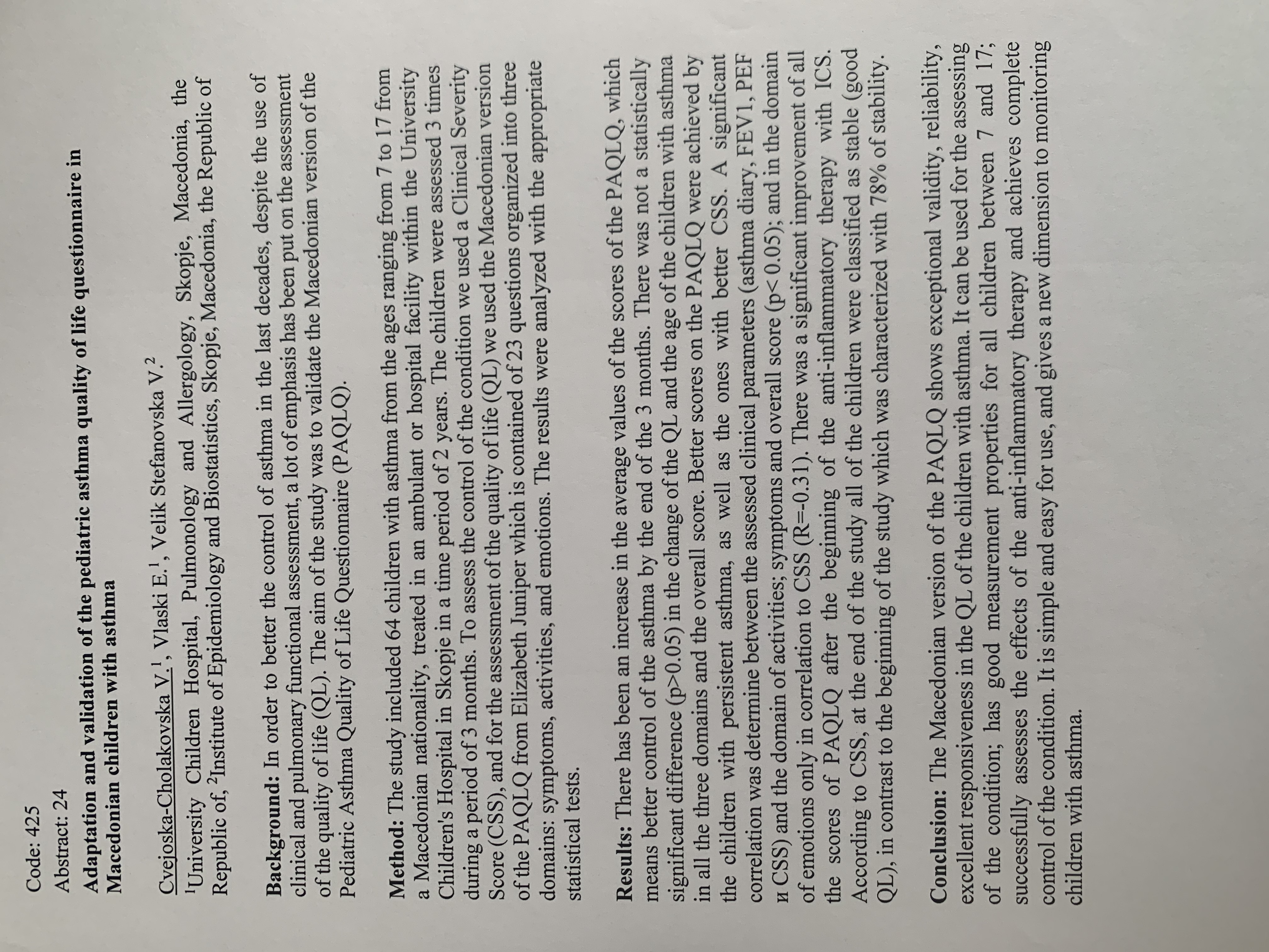 Adaptation and validation of the pediatric asthma quality of life questionnaire in Macedonian children with asthma