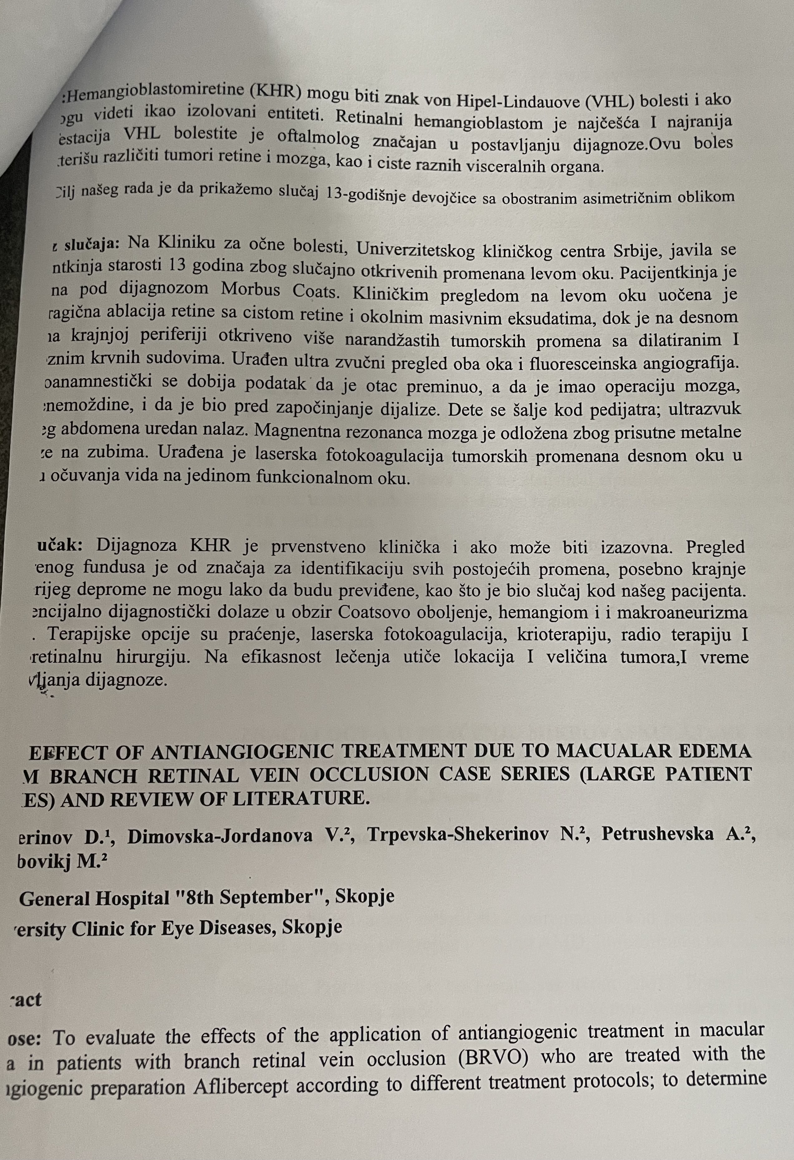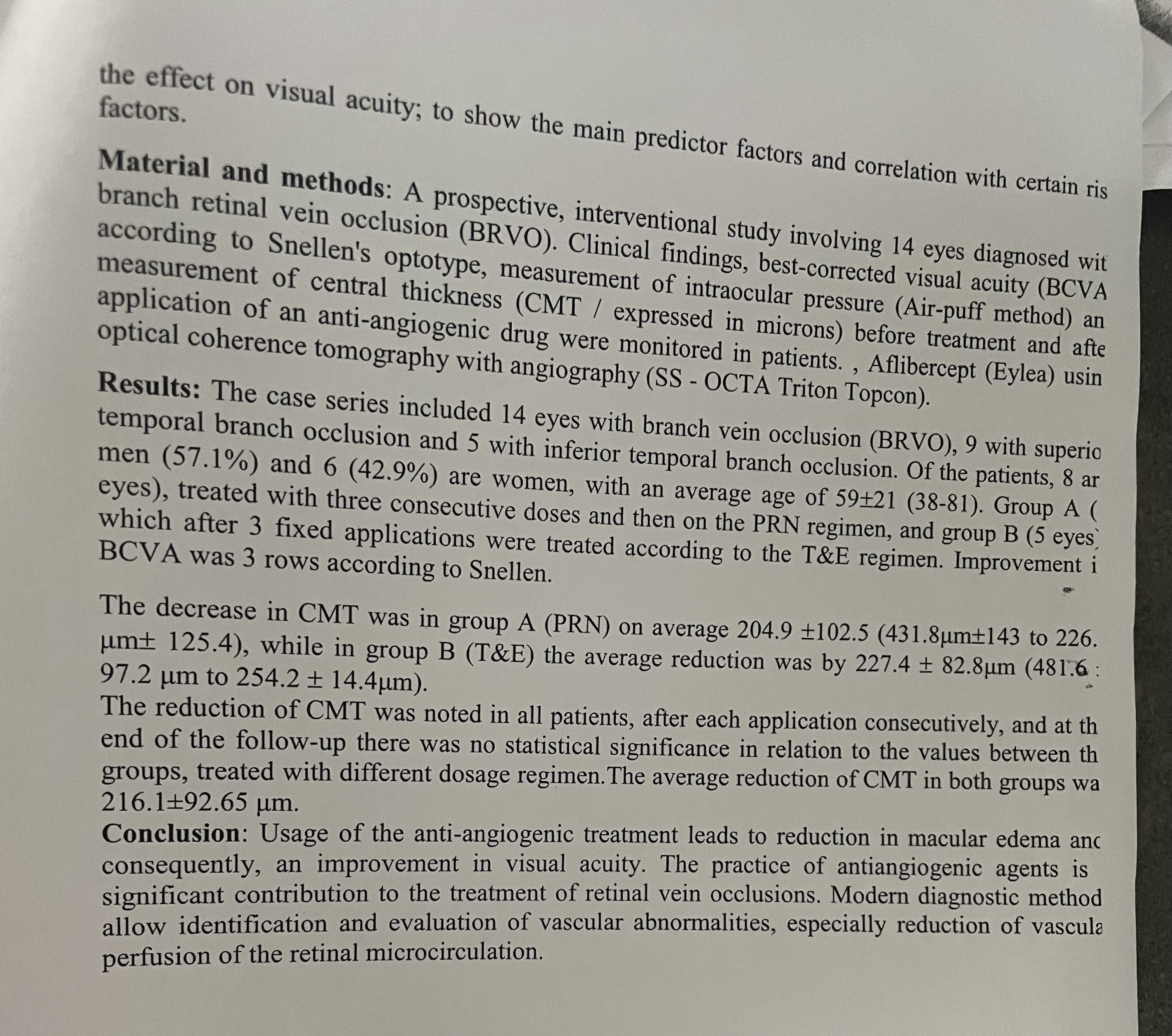 THE EFFECT OF ANTIANGIOGENIC TREATMENT DUE TO MACULAR EDEMA FROM BRANCH RETINAL VEIN OCCLUSION