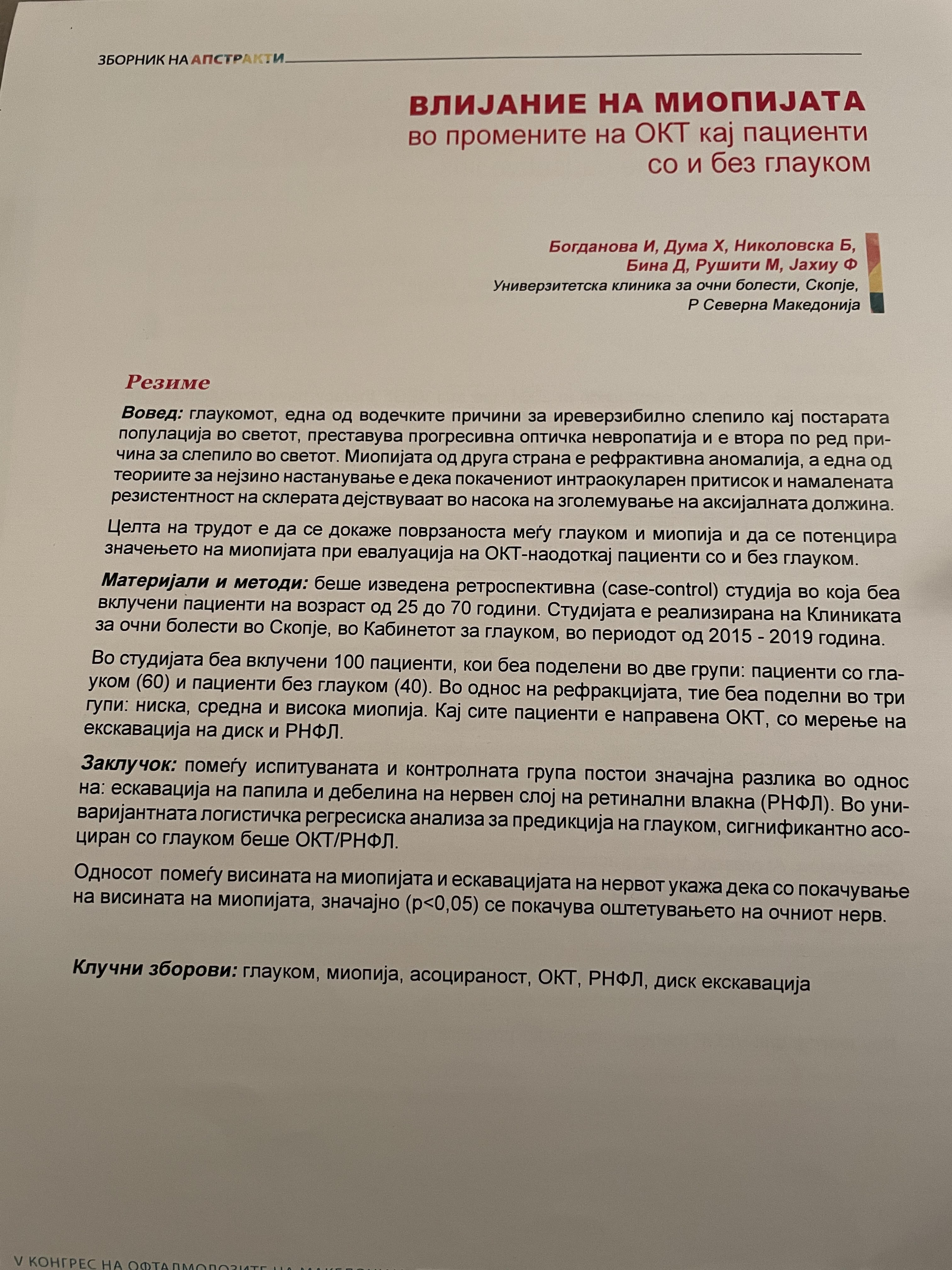 Влијанието на CCT за појава и прогресија на глауком кај пациенти со и без миопија